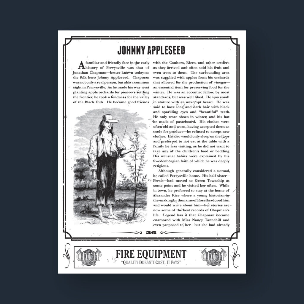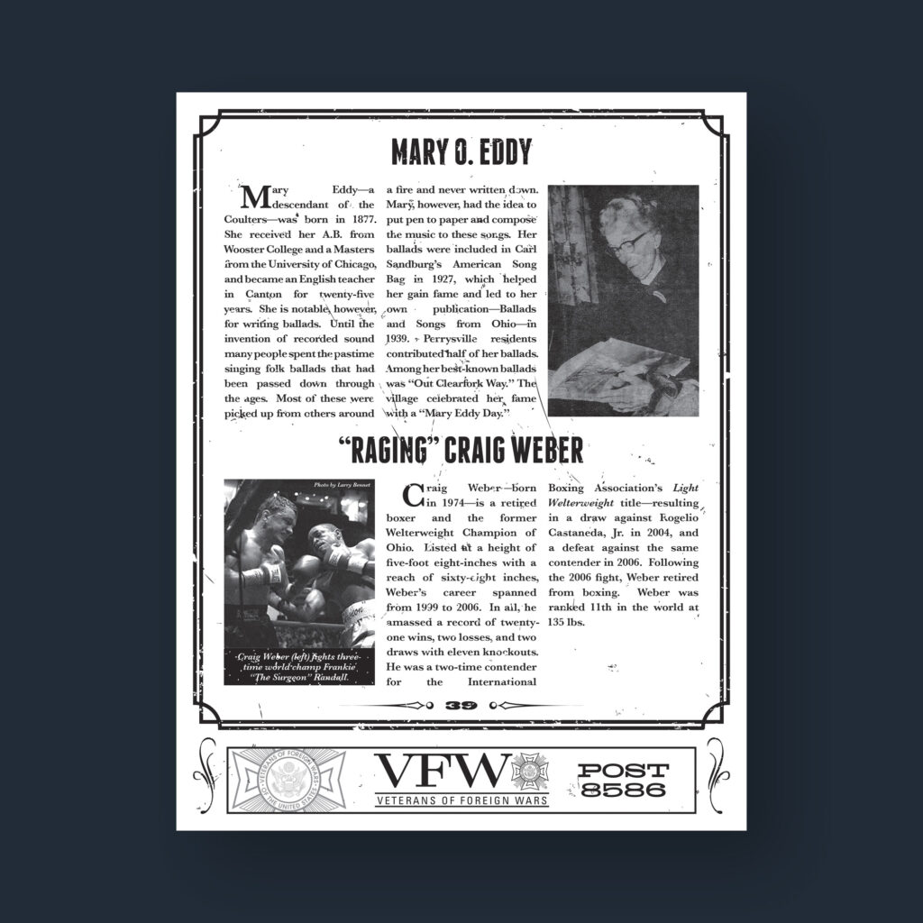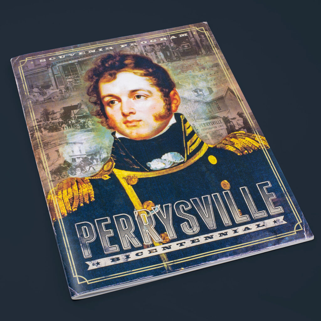 Like many of my projects, this one began with a history lesson. Perrysville had been named after Commodore Oliver Hazard Perry, a hero of the War of 1812 during the Battle of Lake Erie. After losing four of his five ships, Perry was famously rowed to his final ship with a flag reading “Don’t Give Up the Ship”. With my design, I wanted to incorporate as much of this history as possible. Combining a holding shape based off the Navy sleeve stripe for commodore rank, an etching of Perry, and the strong, bold Ziggurat typeface, I felt I achieved this. …But the voting panel did not and another design was chosen.