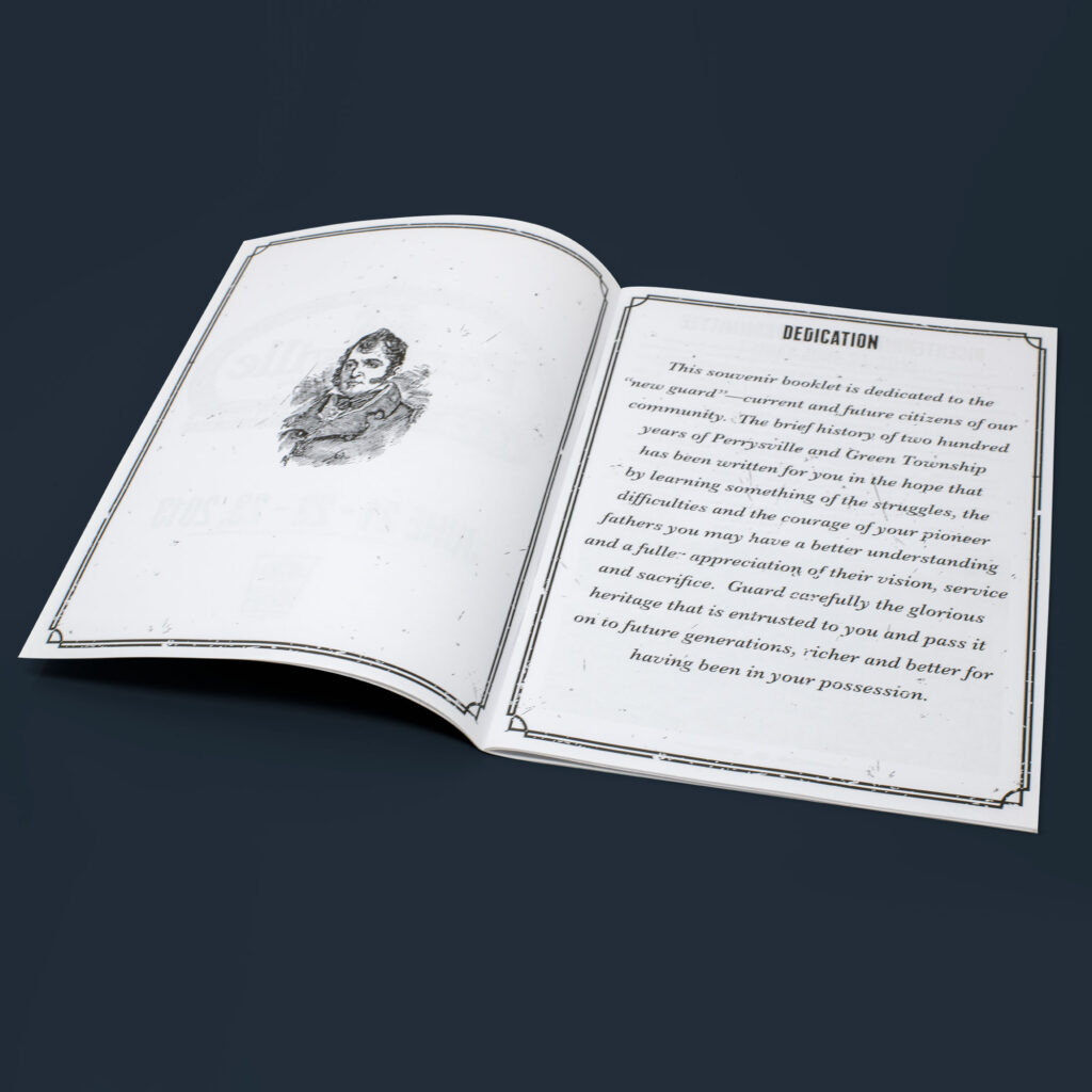 Despite not winning the logo competition, I was offered the chance to design a promotional pamphlet that would be offered at the bicentennial celebration. Within it would be historical articles, photos, biographies, and more.